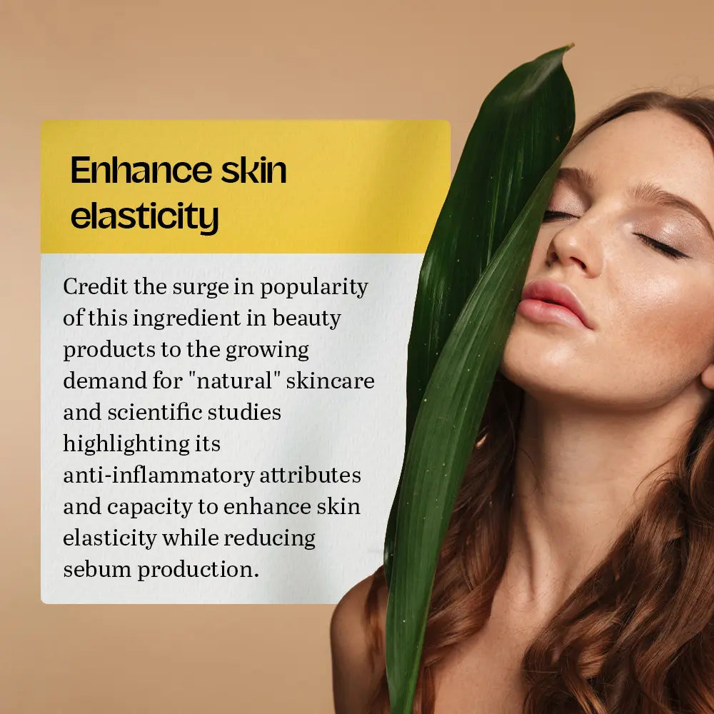 Credit the surge in popularity of this ingredient in beauty products to the growing demand for "natural" skincare and scientific studies highlighting its anti-inflammatory attributes and capacity to enhance skin elasticity while reducing sebum production.